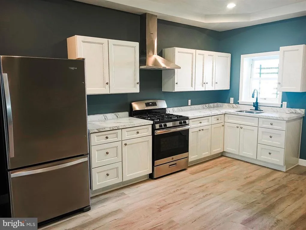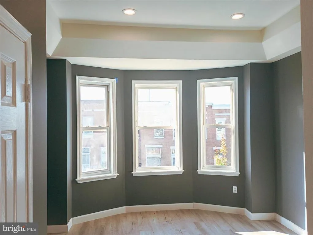 Beautifully renovated in 2023, this home perfectly blends modern design with classic Baltimore charm! Enjoy a bright open floor plan with coffered ceilings, luxury vinyl plank flooring, and an exposed brick wall that adds warmth and character.